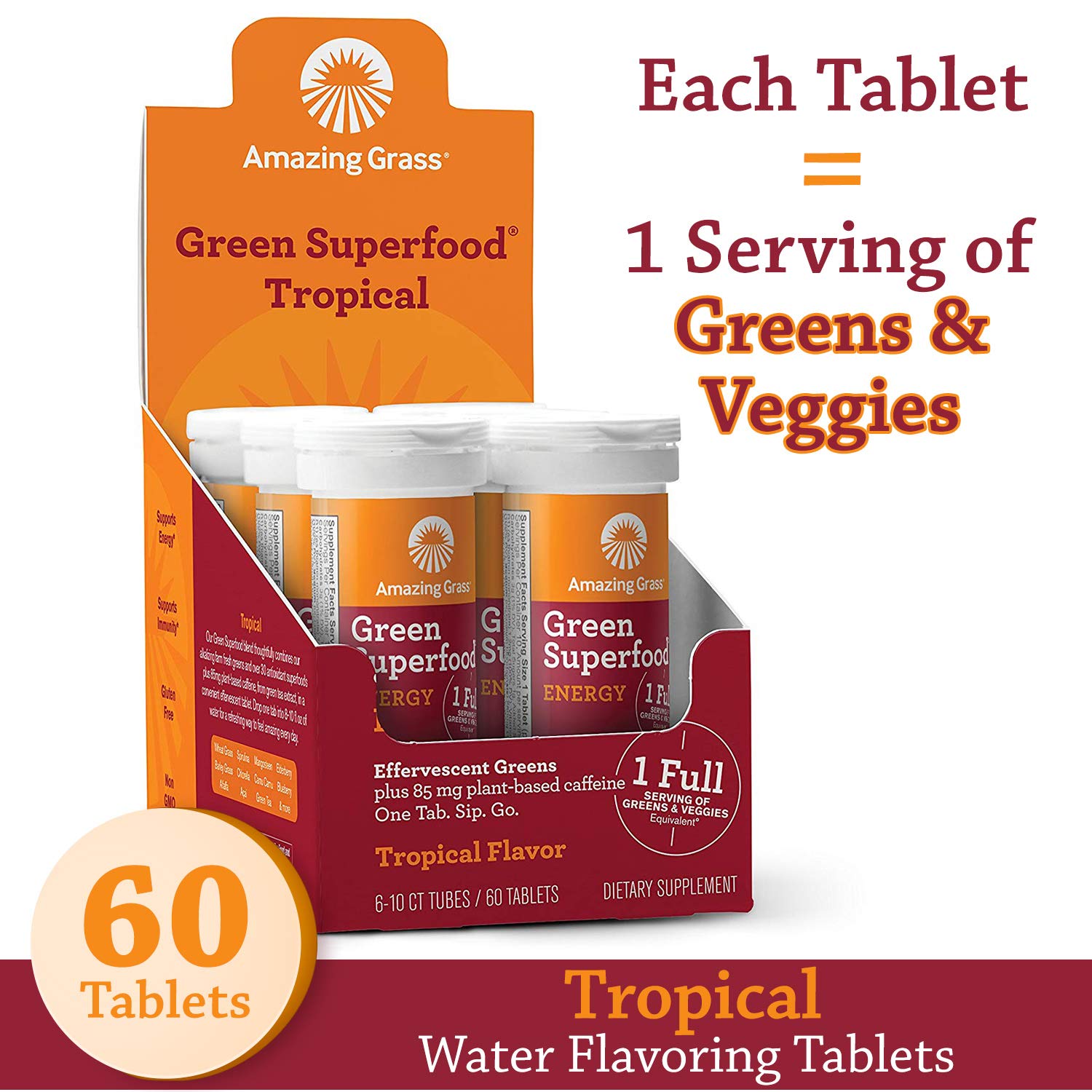 Amazon Com Amazing Grass Effervescent Energy Tablets Greens Green Tea Caffeine Water Flavoring Tablet With Antioxidants Tropical 60 Count Grocery Gourmet Food