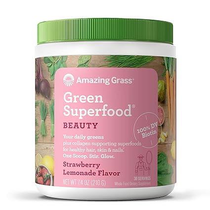 Amazon Com Amazing Grass Green Superfood Beauty Greens Powder With Biotin Collagen Supporting Superfoods Strawberry Lemonade 30 Servings Health Personal Care