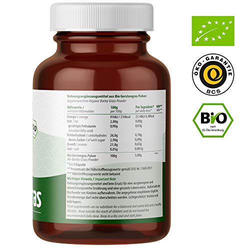 Barley Grass Capsules Of High Dosage Organic 180 Pieces Of 500 Mg Barley Grass Powder From Germany Amazon De Drogerie Korperpflege