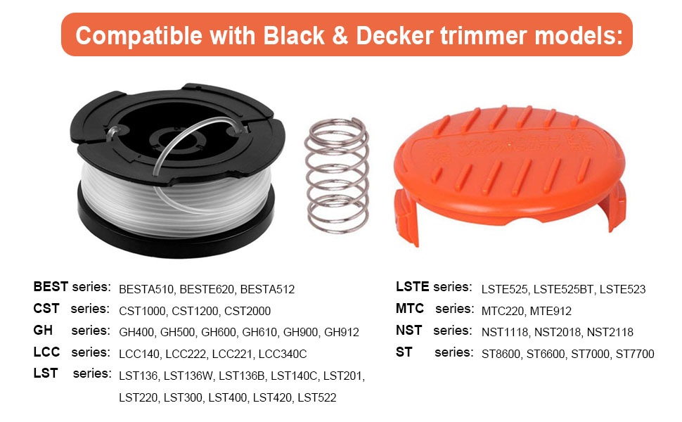 Thten Af 100 Replacement Spools For Black Decker Gh900 Gh600 Lst522 Lcc140 String Trimmer Weed Eater Refills 30ft 0 065 Auto Feed Spool 8 Pack 6 Replacement Spool 1 Trimmer Cap 1 Spring Amazon Ca Patio Lawn