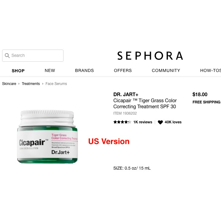 Cicapair Tiger Grass Cream Dr Jart Sephora