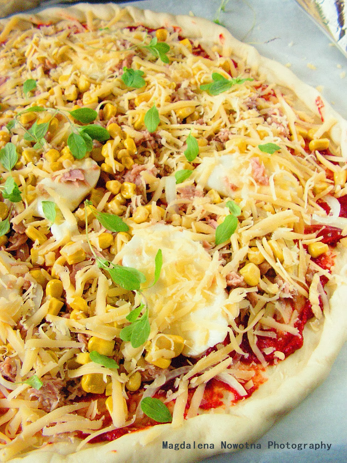 Piernikowa Chata Pizza Dwa Sery Z Tunczykiem I Kukurydza Oraz Sosem Smietanowo Czosnkowym