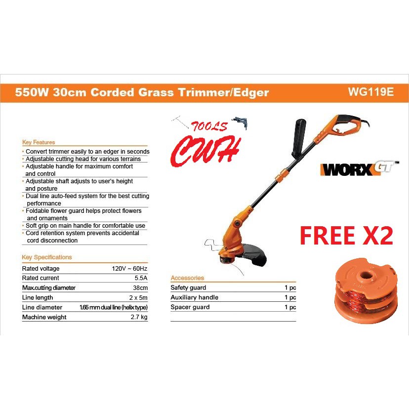 550w 30cm Worx Wg119e Grass Trimmer Cutter Edger Wg 119e Shopee Malaysia
